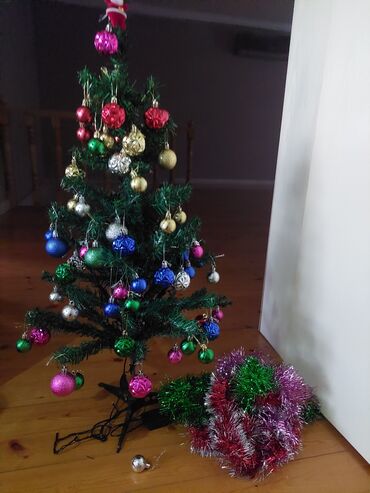 Süni Yeni il şam ağacı – bəzək dəsti ilə - Hündürlük təxminən 120–130