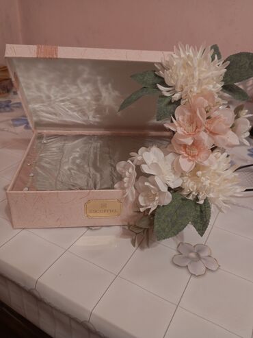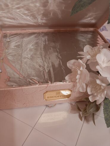 İdeal veziyyetdedir.12 eded xonçadır.Üzerinde elave olaraq verilir/12 eded bahalı modelden yığılmış güllər-2 manken bahalı modelden,2 taxta veşilka,2üzük qabı ve üzük mankeni,4 eded göbelekkimisinden.