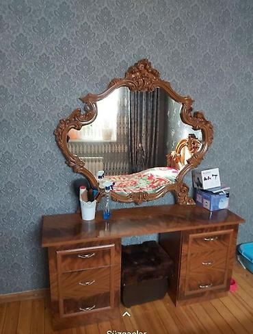- Geniş dekorativ güzgü: oyma çərçivəli, masa ilə uyğun