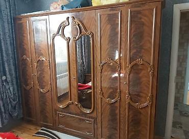 - Dolab: 6 qapılı iri qarderob, 2 böyük güzgülü orta hissə, aşağıda çekmecə bölməsi; içəridə asılqan yerləri və rəflər