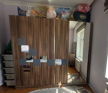 - Böyük sürgülü şkaf: bir qapısı tam boy güzgülü, digər qapısında dekorativ kvadrat güzgülər