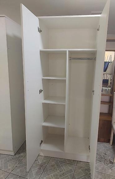 Ağ rəngli iki qapılı paltar dolabı.
