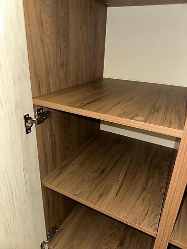 - Daxili quruluş: Bir bölmə boyunca bir neçə geniş rəf – paltar, məişət tekstili, qablaşdırmalar və s. üçün bol yer. Rəflər möhkəm dayaqlarla bərkidilib.