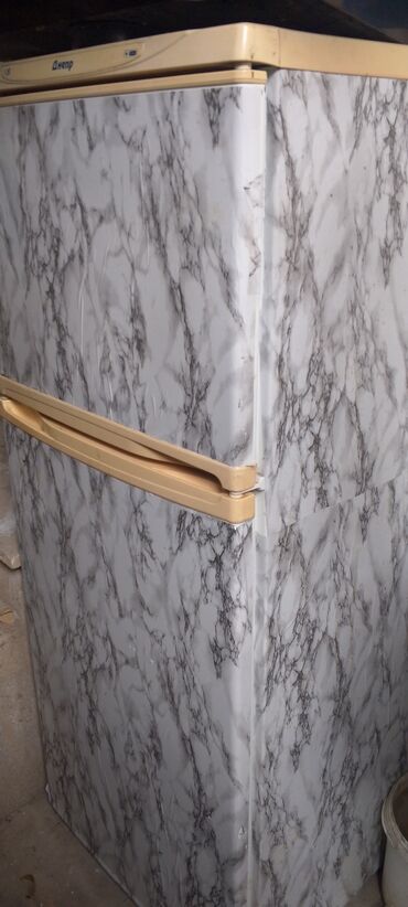 İkiqapılı soyuducu (üstdən dondurucu) - Brend: Dnepr (üzərindəki yazıya görə) - Rəng: ağ - Quruluş: yuxarıda dondurucu kamera, aşağıda soyuducu bölmə - Mexaniki idarəetmə: temperatura tənzimləmə d...