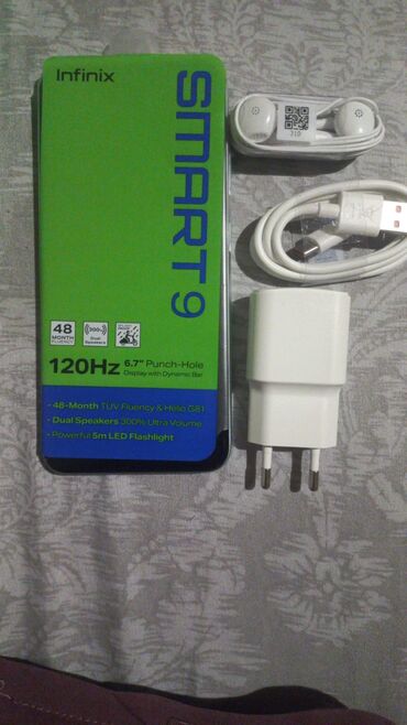 İnfinix smart 9 təzədədir heç bir problemi yoxdur heç bir cızığı yoxdur ekran sürəti 120 HZ Bateriya tutumu 5000 H. Yaddaş 4GB RAM 128 GB Adaptiri Nausniki var üstünde original kabrosuda veriləcək
