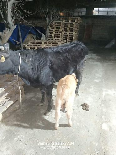 Südlü inək və balası Balasi disidir Heyvan 4emceyinen 8lt sud verir - Növ: inək (süd verən) və buzov - Rəng: inək – qara, buzov – qəhvəyi, alnında ağ ləkə - Buzov ana südü ilə bəslənir, heyvanlar ...