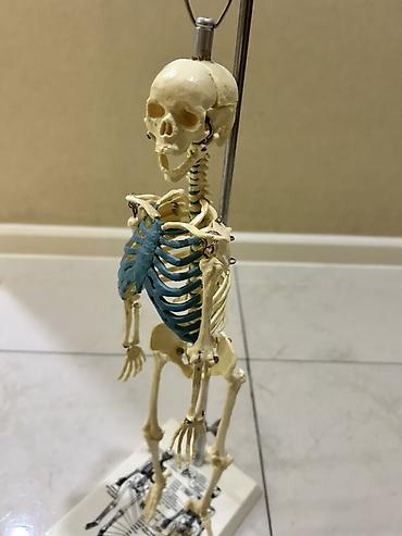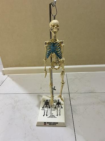 - Quruluş: Bütün əsas sümüklər, oynaqlar və kəllə detalları göstərilib; qabırğa qəfəsi rənglə (mavi) vurğulanıb
