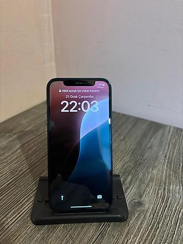 IPhone 12. Telefon ideal veziyetde. Ciziqi udari olmayib. Face id, true tone aktivdir. Pil 82%. Xanim seliqeli shekilde istifade edib. Ustunde original kabel ve qutusu verilir. Barter yoxdu