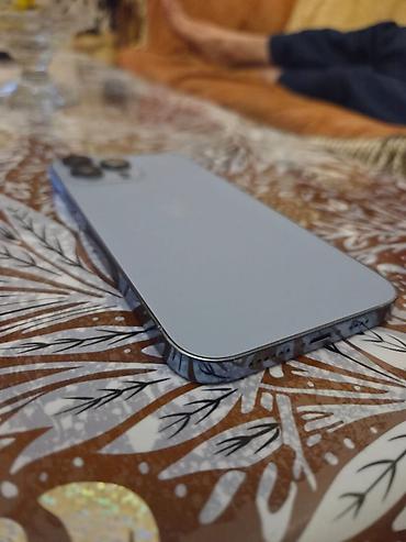 Şəkillərdə cihazın ön və arxa görünüşü, üçlü kamera modulu və yan kənarları göstərilib. iOS kilid ekranı görünür. Sierra Blue rəngində şık korpus və Pro kamera bloku ilə güclü, sürətli və çox yönlü iPhone modeli.
