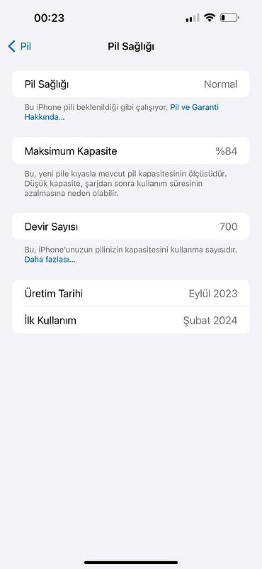 İphone 15 128 gb 84 pil ekraninin yuxarısında balaca cat var qalan hər şey işləyir