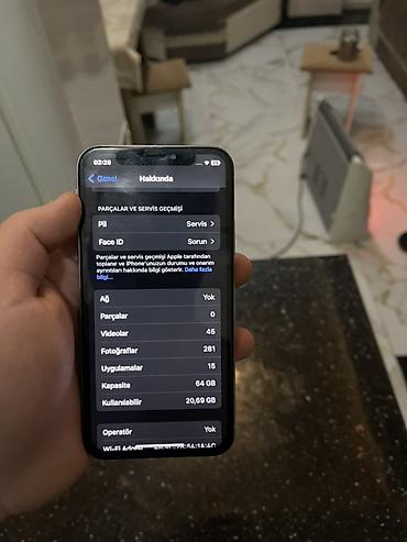 IPhone X 64 GB FACE İD ishlemir. qalan bütün funksiyaları ishlekdi, batareyasi yeni dəyişdirilib, ekranı yenidi. ilk istifadəçisi özüməm. 2017 çi ildən bəri.