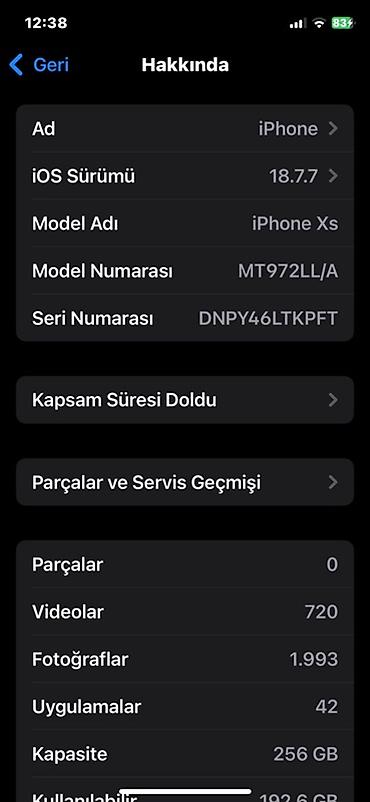 - Model: iPhone XS (Model nömrəsi: MT972LL/A)