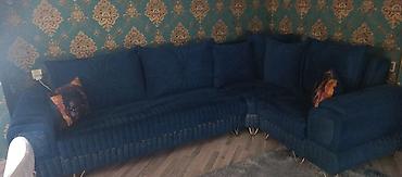 Satılır: Künc divan dəsti - Model: Künc (L) formada, sağ-sol quraşdırıla bilən modul quruluş - Material: Yumşaq toxumalı, təmizlənməsi rahat parça; dekorativ düymə tikişləri və yonuq taxta dekor p...