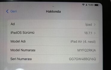 Apple iPad Air (4‑cü nəsil) + Apple Pencil Xüsusiyyətlər: - Model adı: iPad Air (4. nəsil) - Model nömrəsi: MYFQ2RK/A - iPadOS versiyası: 18.7.1 - Rəng: Gümüş (Silver) - Touch ID üst düymədə - USB...