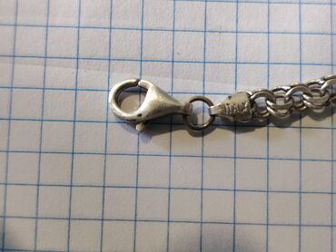 Gümüş zəncir qolbaq - Material: 925 əyar sterling gümüş (qapanış yanında “925” damğası var) - Zəncir növü: klassik yastı/çarpaz həlqəli (Curb/Figaro üslubuna bənzər), parlaq cilalanmış səth - Qapa...Giriş•Qeydiyyat