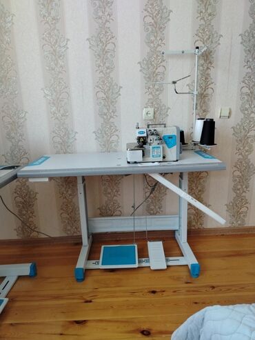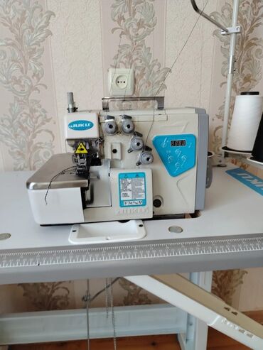 - Sənaye overlok (JUKU): 3/4 ipli tikiş üçün nəzərdə tutulmuş model, rəqəmsal göstəricili idarə paneli, ip gərginliyi üçün ayrı-ayrı tənzimləyicilər, bıçaqlı kəsim sistemi. İki pedallı idarəetmə, ip dayağı və geniş iş masası ilə tam komplekt.