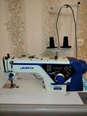 - Sənaye tipli düz tikiş maşını JUKU: elektron idarəetmə paneli, sürət tənzimləyici düymə, LED göstəricilər, ip gərginliyi və tikiş uzunluğu üçün tənzimləmə mexanizmləri, universal ayaq. İki bobinlik ip dayağı, möhkəm metal platforma və dayanıqlı iş masası ilə birlikdə. Aşağıda rahat pedal sistemi və xətkeşli iş səthi var.
