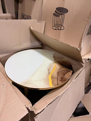 Türkiyə istehsalı “Dolunay” sehpalar dəsti - Dəst: 3 hissə – 1 oval orta sehpə + 2 dairəvi köməkçi sehpə - Dizayn: Açıq bej/taş effekti üst səth, mat qara metal ayaqlar - Modul quruluş: Köməkçi se...