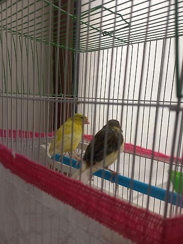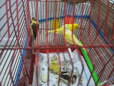 - Şəkillərdə sarı və sarı-qara rəng çalarlarında bir neçə kanareyka görünür. Sakit xasiyyətli, melodik səsə malik qəfəs quşlarıdır.