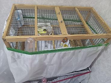 - Taxta çərçivəli metal barmaqlıqlı geniş qəfəs, yuxarıdan açılan qapaq və kənarları parça ilə örtülü.