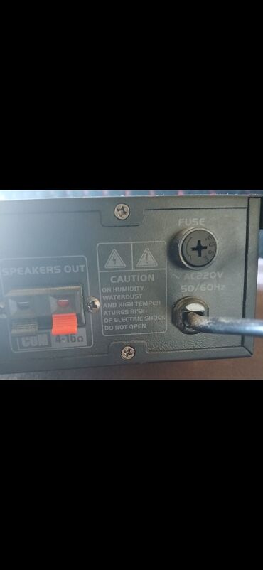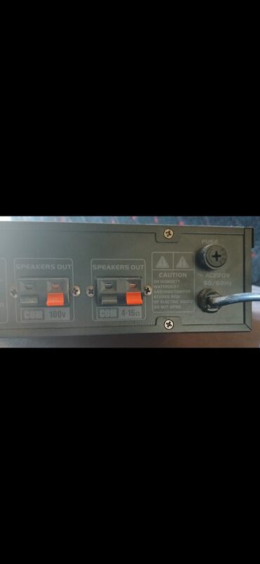 - Arxa paneldə “Speakers Out” yaylı klemmlər, enerji şnurunun çıxışı, təhlükəsizlik xəbərdarlıqları