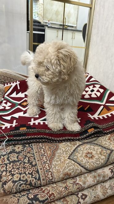 Minyatür pudel tipli, krem rəngli, tükləri qıvırcıq balaca it balası. Xüsusiyyətlər: - Kompakt ölçü: mənzil və qapalı məkan üçün uyğun - Yumşaq, hipoallergen sayılan qıvırcıq tük örtüyü - Ağıllı, ...