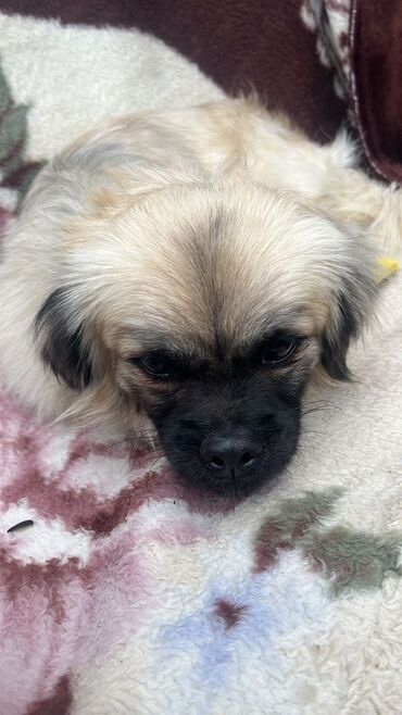 - Cins növü: kiçik/oyuncaq ölçülü spitz–pekinese tipli (şirin, yastı burunlu, qara maskalı sifət)