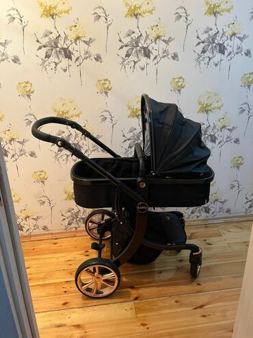 Uşaq arabası – şassis və beşik modulu ilə 1200 azn alınıb 200 satılır. Kolyaska üçün ağcaqanad toru və yağışdan qoruyucu örtük (plyonka) mövcuddur. Xüsusiyyətlər: - Rəng: bej/konyak tonları, qara...