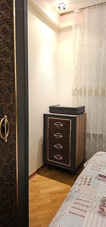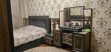 Yataq mebeli dəsti – Nərimanovda, Montində. Tərkibi: - Çarpayı: yumşaq tuftinq başlıqla, neytral bej-qəhvəyi tonlarda. - 2 ədəd tumba: geniş çekmecəli, qızılı rəng akssessuarlarla. - Güzgülü komod...