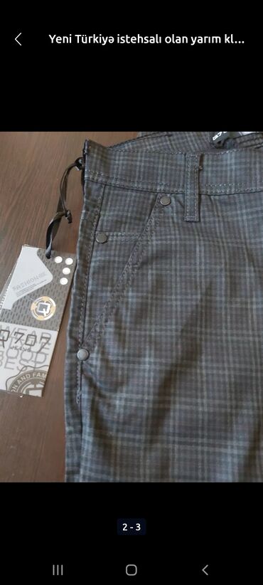 Kişi şalvarı – klassik üslubda, açıq-boz rəngdə. - Parça: nazik, hamar toxuma (kostyum tipli). - Kəsim: düz balaq, arxa hissədə elastik rezinli bel; kəmər üçün ilgəklər mövcuddur. - Ciblər: arxada ...