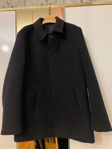 Qara rəngli Erkek palto – klassik düz kəsim - Dizayn: Tek düyməli, ingilis yaxası, dizi keçən uzunluq. - Rəng: Dərin qara. - Parça: Sıx, hamar toxuma; iç tikişlər kontrast açıq rəng lentlə səliqəl...