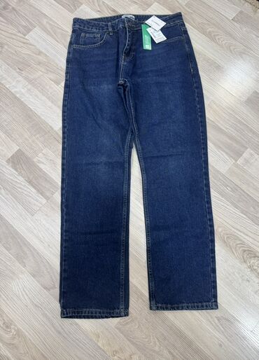 Tünd mavi rəngdə denim şalvar - Kəsim: düz boru, bel hissəsi kəmər