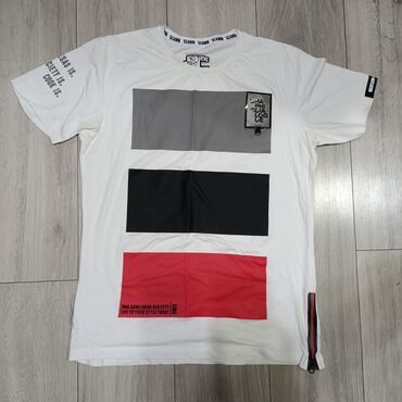 - Ağ t‑şört (rəng bloklu):100% pambıq,tikişdə dekorativ fermuar aksenti. Alt hissədə tip qrafik yazı.