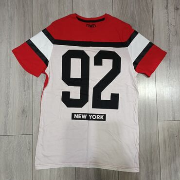 - Qırmızı/ağ t‑şört: 100% pambıq,basqılı yazılar
