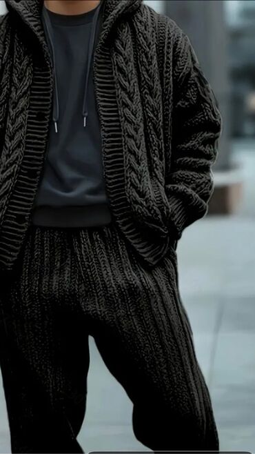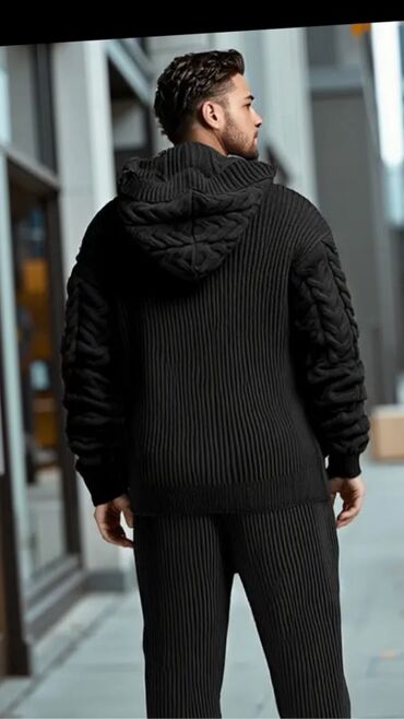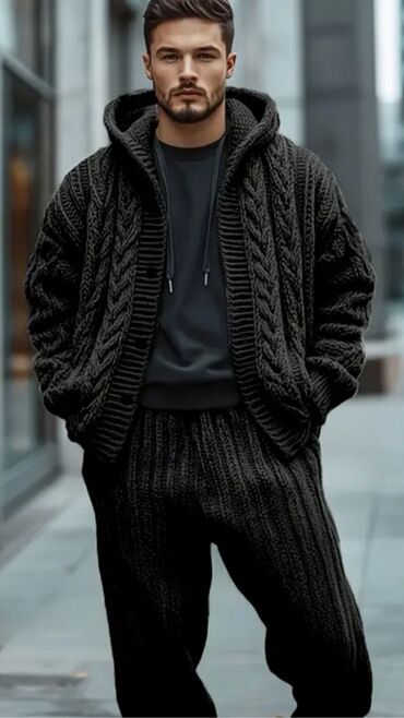 Kişi üçün trikotaj takım – kapüşonlu kardiqan və şalvar