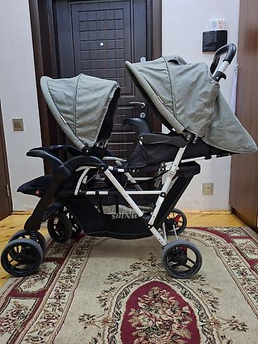 İkiz/yaşca yaxın iki uşaq üçün tandem tipli uşaq arabası