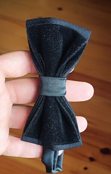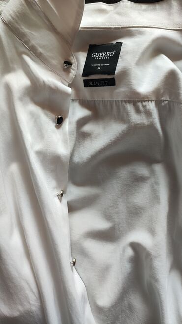 - Köynək və qalstuk: ağ klassik yaxalı köynək və qara atlas qalstuk kombinasiya edilib