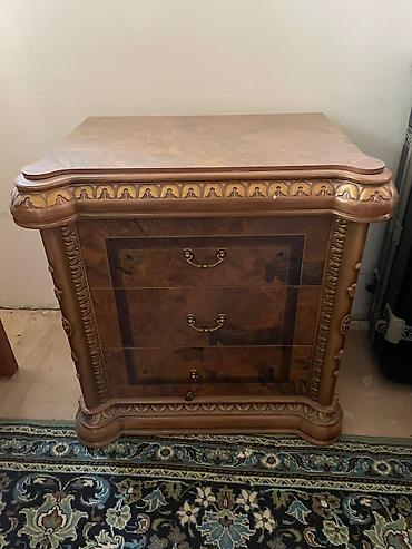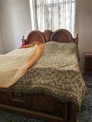 - İki nəfərlik taxta çarpayı – oyma dekorlu başlıq, massiv karkas