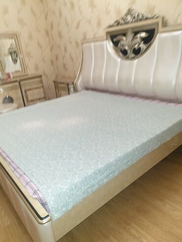 - 2 nəfərlik çarpayı (yumşaq başlıq, dekorativ naxışlı üst hissə) 2.00/2.00