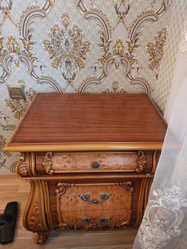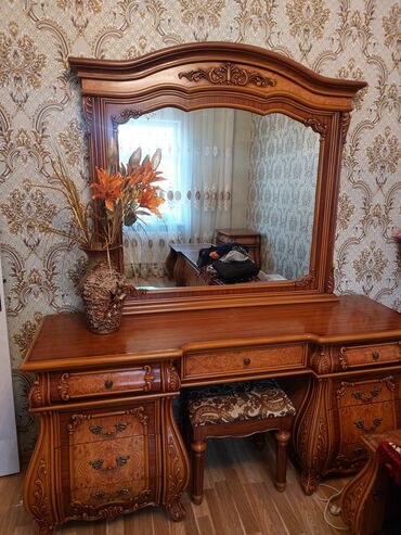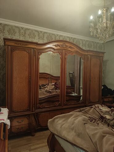 Yataq otağı mebel dəsti Tərkibi: - 2 nəfərlik çarpayı – yumşaq başlıq, taxta korpus. - 2 ədəd tumba (çarpayının hər iki tərəfində). - Komod – 4 geniş çekmece, üstündə güzgü paneli. - Güzgülü sürgü...