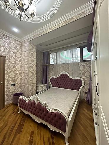 - Qranat-bənövşəyi məxmər kapitone başlıq və ayaqlıqla dekorlu iki nəfərlik çarpayı