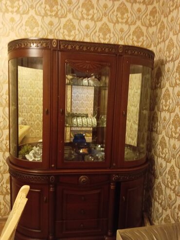 Klassik üslubda böyük vitrin-bufet vezyeti tezedi islenmis olsada Vezyeti:islenmisdr yaxsi vezyetdedi - Material: masiv ağac və MDF kombinasiyası, tünd qoz rəngdə - Dizayn: zəngin oyma naxışlar, yu...