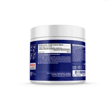 Güclü və funksional etiket dizaynı, ölçü qaşığı işarəsi ilə 40 porsiyaya qədər istifadə imkanı təqdim edir. Fitness və yüksək intensivlikli məşqlər üçün klassik, tək tərkibli kreatin seçimi.