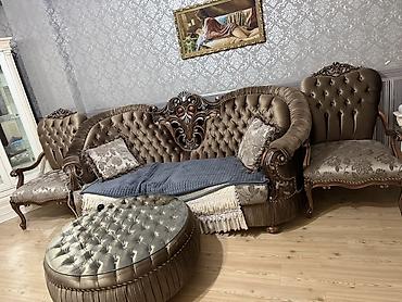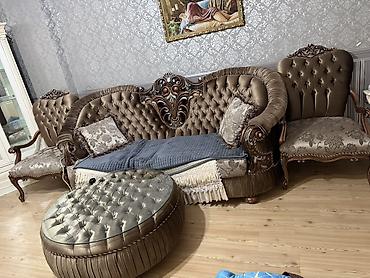 Mebel: Yumşaq kreslo dəsti (2 ədəd) Təsvir: - Klassik dizaynlı, iri ölçülü yumşaq kreslolar - Qəhvəyi rəngli toxumalı parça üzlük, dekorativ naxışlar - Geniş oturacaq və qalın bel-dirsək dayaqları...