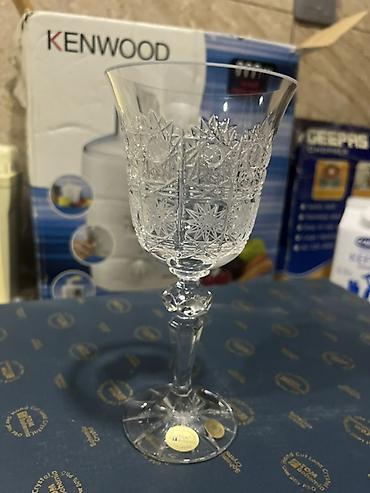 Kəsimli büllur şərab/qədəh stəkanı - Material: qalın divarlı kəsimli büllur - Dizayn: əl işini xatırladan dərin oyma naxışlar (romb, ulduz və xətt kombinasiyası) – işıqda parıltını gücləndirir - F...