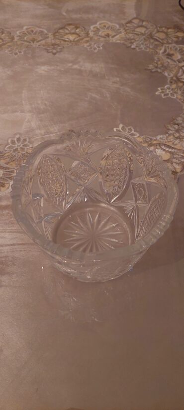Kəsimli şüşədən dekorativ qab - Material: qalın, keyfiyyətli kəsimli