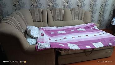 Şəkillərdəki örtü və yataq dəsti nümayiş məqsədlidir. Divan gündəlik istifadə və qonaqlar üçün rahat yuxu səthi təqdim edir.