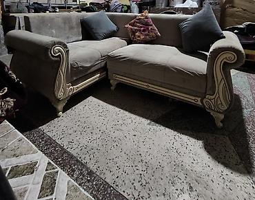 Künc divan dəsti - Rəng: açıq bej, dekorativ boz yastıqlar ilə - Forması: L-şəkilli künc konfiqurasiyası, yumru künc hissə - Transformasiya: açılıb-yığılma mexanizmi ilə çarpayı funksiyası (geniş ...
