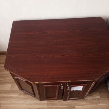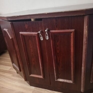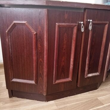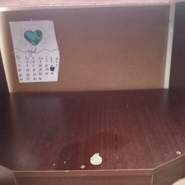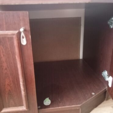 Tünd qəhvəyi rəngli, künc yerləşdirilməyə uyğun aşağı hündürlüklü şkaf arxası qırıqdir ama bir direlle hel olunur alıcılara 30 manat