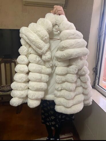 🛑 “Tamamilə yeni, 1 defe geyinilib. Sifarişlə gəlib, amma razmer böyük olduğu üçün satılır 150 AZN-ə alınıb, 90 AZN-ə satılır.” Ağ rəngli tüklü üst geyimi – həcmli, yumşaq teksturalı kürk tipli p...